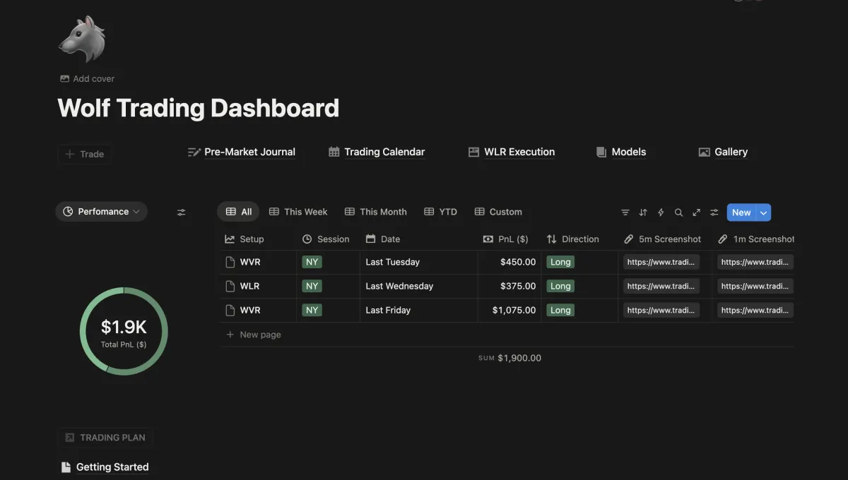 Structured pre-market and trade journal
